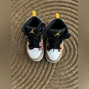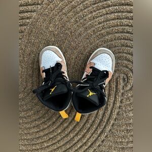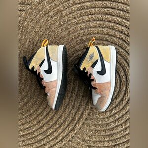 Nike Kids Jordan 1 Mid SE Sneakers Peach White and Gold Retro Girls Boys Toddler