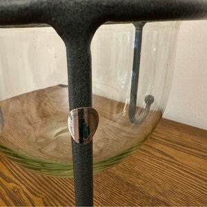 Partylite Table Top Seville Wrought Iron Stand with Glass Holder. This is retired and very hard to find, The glass can also fit in the tall Seville Stand. This holds a 3 Wick Candle or can hold flowers and also fruit. There are bubbles in the glass consistent with blown glass. This piece is beautiful. Bubbles and imperfection in glass, verifies it authentic Hand blown glass and increases the value. New never used has been stored. Will ship in its original packaging.