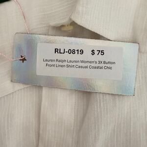 Lauren Ralph Lauren Women's 3X Button Front Linen Shirt Casual Coastal Chic