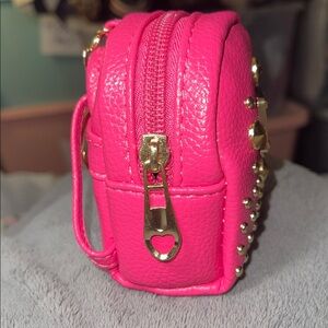 NEW Vegan Pebble Leather Purse Charm MCM Design Pouch Hot Pink