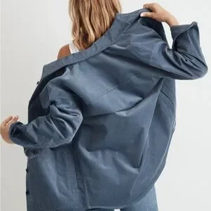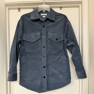 Stylish utility jacket. Features button front and chest pockets. Perfect for layering.