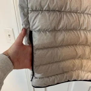 Eddie Bauer Women's Puffer Pullover Jacket, Navy & Grey with orange trim. Perfect for fall/winter wear.