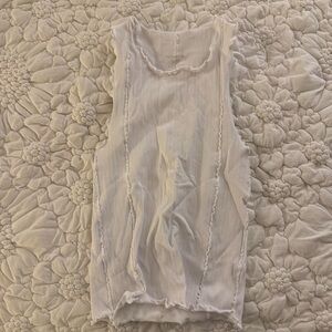 Elevate your wardrobe with this chic white ribbed tank top featuring lettuce hem detailing. Perfect for layering or wearing on its own, this versatile piece is a must-have for any fashion-forward individual.