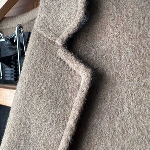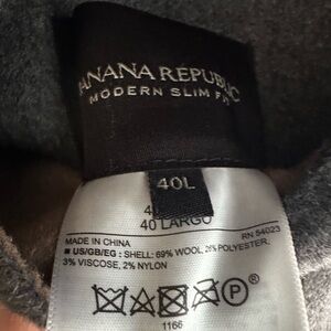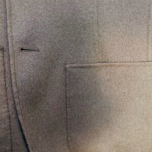 Stylish and very soft camel/gray reversible unconstructed blazer from Banana Republic. Versatile—one day it’s camel, the next, it’s grey. Patch pockets. Ventless. Slim fit. I’m 5’10” and 155 lbs and normally wear 40R. This jacket is the same length as the other sport coats in my closet and fits me well, so it fits like a Medium/40R, though it’s labeled 40L. Classic design with a modern touch. Pair it with jeans or dressier trousers. Mint condition.
