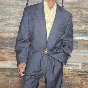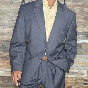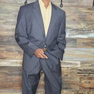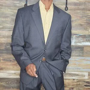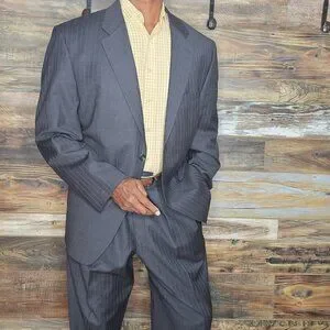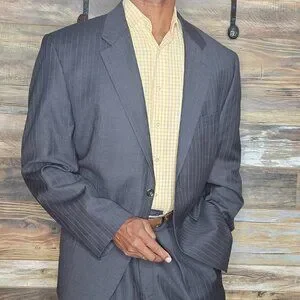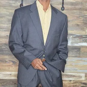 Ralph Lauren 100% Wool Gray Striped Made in Canada Suit 46R X 38W