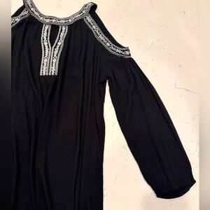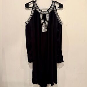 Time and Tru Black Embroidery Boho Open Shoulder Dress Women’s Size XL NWOT