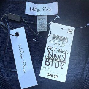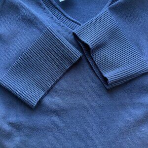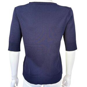 Melissa Paige Sweater Womens PM Navy Rayon Blend Ribbed Elbow Sleeve V-Neck