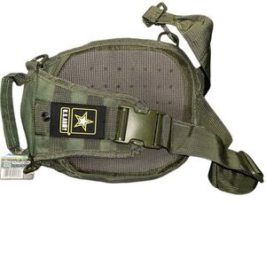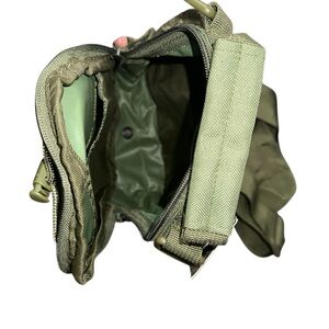 Olive green U.S. Army tactical-style utility bag with multiple compartments, MOLLE webbing, and adjustable shoulder strap. Durable, water-resistant material ideal for travel, outdoor adventures, or daily use.