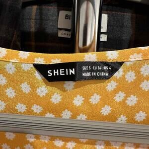 SHEIN Womens Yellow White Floral Cross Front Ruffle Flutter Sleeve Crop Blouse S