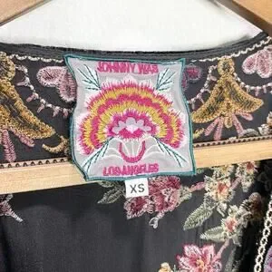 Johnny Was Lilith Maxi Wrap Dress In Black Embroidered XS