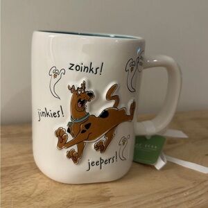 The Rae Dunn x Scooby Doo Ghost “Zoinks Jeeprs Jinkies!” “RUH ROH!” Double Sided Ceramic Mug is a whimsical and fun addition to any pottery and glass collection. Made from ceramic, this double-sided mug features a unique design inspired by the popular cartoon series Scooby Doo. With the humorous phrase "Zoinks Keepers “RUH ROH!”” printed on both sides, this mug is sure to bring a smile to anyone's face as they enjoy their favorite hot beverage. Perfect for fans of both Rae Dunn and Scooby Doo, this ceramic mug combines style and functionality in a playful way.