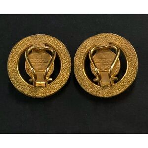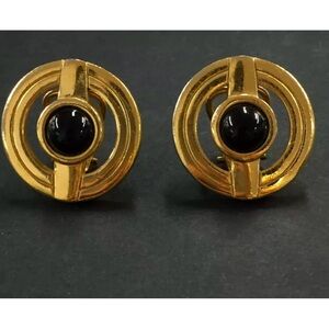 Givenchy gold plated clip earrings with dark stone detailing. Excellent vintage condition. Could easily be converted to pierced earrings