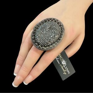 Traci Lynn Dazzling Silver and Black Ring Stretch