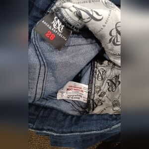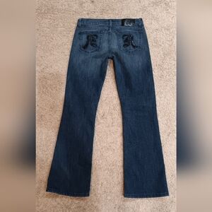 ROCK & REPUBLIC WOMEN'S LOW- RISE JEANS SIZE 28 DARK WASH BLING POCKET DENIM