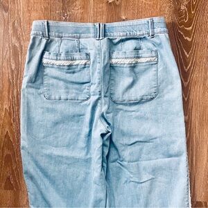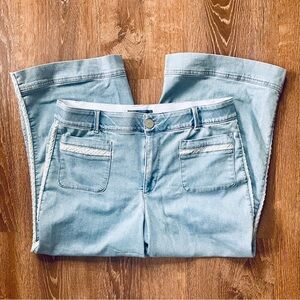 Democracy Absolution Light Wash Blue Denim Jeans Wide Leg Metallic Tweed Detail