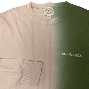 Brooks Brothers Red Fleece Sweater Mens Medium Pink Green Pullover Long Sleeve