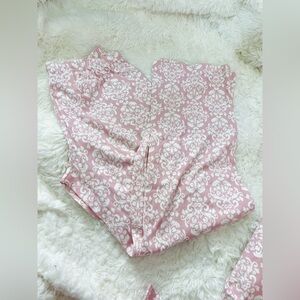Charming pink pajama set with elegant damask pattern. Soft and comfortable for a restful night.