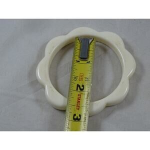 Vintage Set of 2 Bangle Bracelets Yellow Stripe & Scalloped Flower Shape White