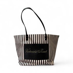 Elegant tote with black and white stripes. Features Victoria's Secret logo. Ideal for daily use.