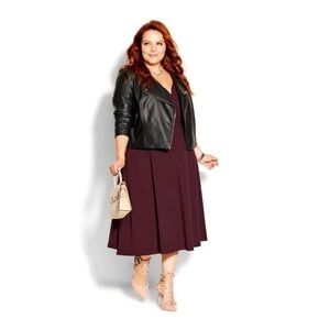 NEW CITY CHIC Cute Girl Fit and Flare Elbow Sleeve Midi Dress Burgundy Size 22