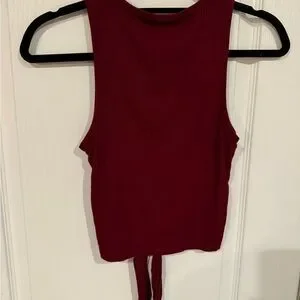 Chic burgundy crop top with tie-front. Perfect for casual wear.