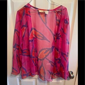 Beautiful vintage Victoria Secret sheer cover up sz S. Missing top button, but easy fix. Otherwise good condition. Pink purple and orange.