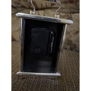 The Bulova Quartz Carriage Clock in Gold Tone with a black face is a beautifully crafted decorative collectible clock. It features a quartz movement, ensuring accurate timekeeping, and is powered by an AA battery for convenience. The elegant black finish adds a touch of sophistication to any room, making it a stylish addition to any collection of clocks. Imported from West Germany, this clock combines quality craftsmanship with a classic design that is sure to impress.