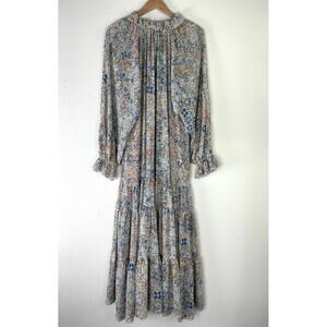 Free People Feeling Groovy Floral Sheer Long Sleeved Maxi Dress Flowy Size Large. Semi sheer fabric, there is no under slip. Bar code sticker above brand tag as pictured.
