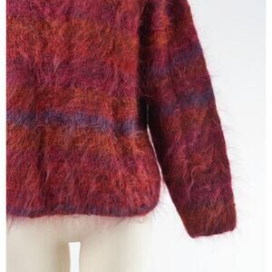 Vintage Burgundy Hand Knit Shaggy Mohair Striped Sweater size M