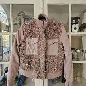 Enjoy some extra cozy style with this bomber jacket that has sherpa fleece on the chest.