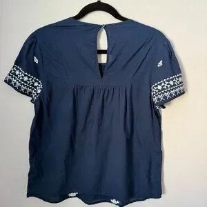 Lucky Brand Navy Blue Embroidered Floral Short Sleeve Women's Top