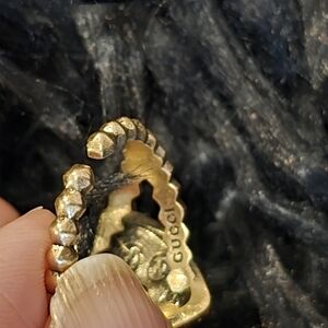 This Gucci 18kgp exquisite red strawberry ring is a stunning addition to any jewelry collection. The vibrant red stones are beautifully complemented by gold accents, creating a luxurious look. Perfect for adding a touch of elegance to any outfit.