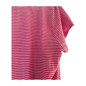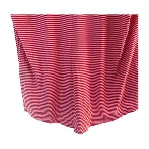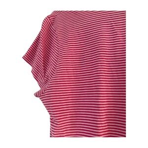 Ralph Lauren short sleeve striped t-shirt in red and white, women’s size XL. Features a v-neckline with white trim and the signature embroidered Polo logo in teal on the chest. Made in Peru from soft cotton blend fabric. Relaxed fit with a slightly curved hem. Gently worn with no major flaws noted. Please note colors may appear slightly different in photos due to lighting and other factors.