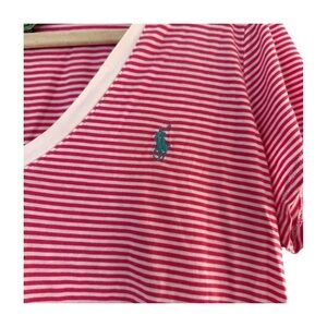 Ralph Lauren Striped V-Neck T-Shirt Red White XL Short Sleeve Logo Tee