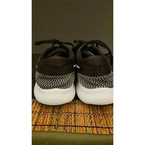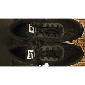 - Sleek black design with white swoosh and sole
