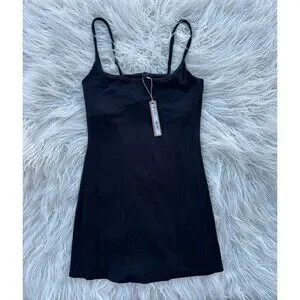 Skims Smooth Lounge Skimpy Strap Scoop Neck Mini Dress Obsidian Size Small