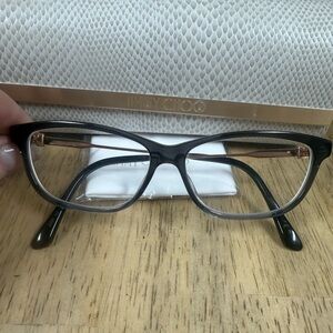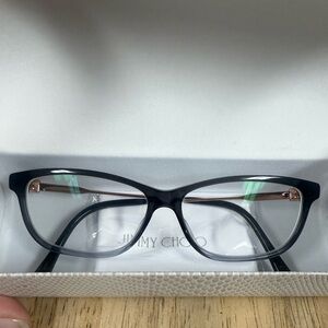 Elegant black eyeglasses with gold accents. Perfect for everyday wear! Comes with the Jimmy Choo glasses case and a cloth. Perfect to put your own prescription in.