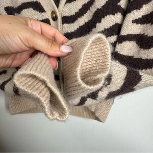 J. Crew Ribbed V-neck Wool Blend Zebra Stripe Knit Cardigan Size M Button Front