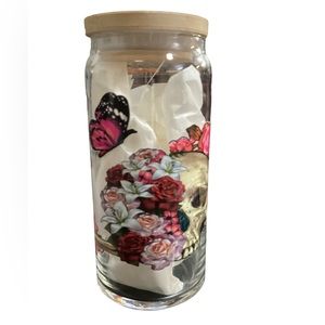 New LOVE skeleton flowers Cup with Bamboo Lid and Straw 20oz