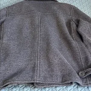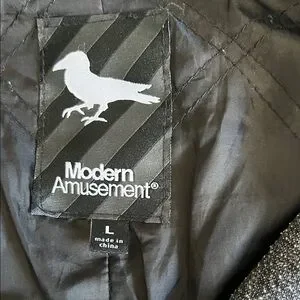 Stylish gray pea coat by Modern Amusement. Features double-breasted design and button closure. Perfect for a classic look.
