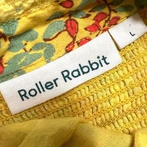 Roller Rabbit Rhody Zarella Silk Blend Yellow Floral Tie Waist Midi/Maxi Dress Women Large