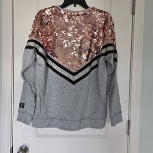 Victoria's Secret PINK Rose Gold/pink Gray Sparkly Sequin Sweater Medium NWOT