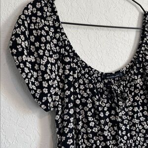 Abercrombie & Fitch Black & White Floral Smocked Blouse