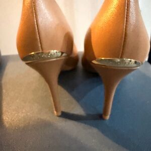 Chic Calvin Klein heels in black and tan. Perfect for any occasion. Sleek and stylish design.