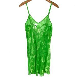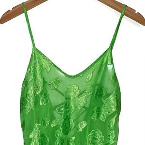 Vintage California Dynasty Green Sheer Floral Chemise Slip Nightgown Dress Small