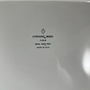 This versatile Corning Ware broil and bake tray, complete with a durable metal rack and elegant wood handles, is ideal for both serving and cooking. Its timeless design and quality craftsmanship make it a highly functional and stylish addition to your kitchen collection.
