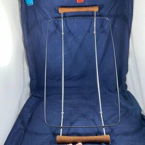 Vintage Corning Ware P-35-B Broil Bake Tray With Metal Rack & Wood Handles White