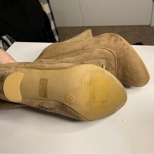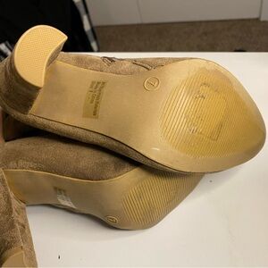Stylish and versatile tan knee-high boots with a lace-up design. Perfect for adding a chic touch to any outfit.
