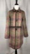 Elegant and rare Worth New York reversible coat, crafted in luxurious 100% wool and made in the USA. One side features a sophisticated glen plaid with soft floral accents, while the reverse reveals a rich mosaic block check in muted tones of sage, rose, and taupe. Trimmed in chocolate faux-suede with horn-style buttons, this tailored mid-thigh coat offers two refined looks in one timeless piece. A signature example of Worth’s American craftsmanship and understated luxury.