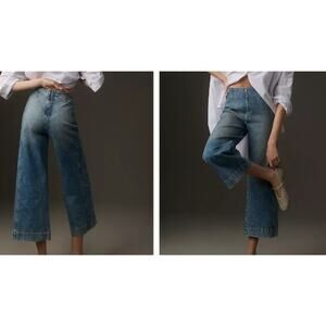 Pilcro Anthropologie Kick Mid Rise Cropped Wide Leg Jeans sz 31